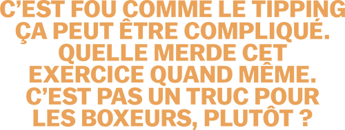 Premier double-pas, tu montes fort au cercle. Pas au dunk, hein, faut pas déconner non plus. Et sans opposition, bien sûr, c’est juste du trois-contre-zéro en répétition. Avec déjà des passes dans le décor. Mais tu montes fort et c’est fluide, le roll est propre. Par contre, les premières courses font vite mal aux jambes. En fait, cinq minutes et t’es déjà crevé alors qu’on se met à peine en rythme. Tu vois Jimmy Butler quand il est complètement cuit pendant les finales NBA 2020 ? Ben même dégaine. Sauf que toi, t’as couru deux pauvres demi-sprints. Mais il fait chaud aussi dans le gymnase ! Les jambes sont super lourdes, ça doit être la chaleur. Tu ne comprends pas, pourtant t’as fait cinq séries de dix pompes pendant cinq jours de suite pour te remettre en forme. Au final, ça sert à rien. Kevin, par contre, il a l’air super fit dans son débardeur. Il s’est encore buté à la muscu. Lui, ça se voit qu’il a bossé pendant l’été. Mais certainement pas son tir, toujours aussi claqué. Ni son cardio. En fait, Kevin, c’est le premier cramé.